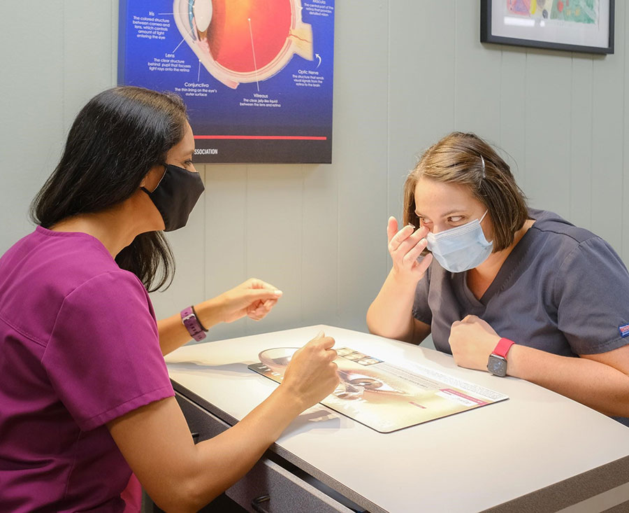 Contacts are an ever-evolving product, and there are lots of different types of them on the market. So when you come in for your contact lens fitting, our doctors will examine your eyes, then recommend the best option for you based on your prescription and overall eye health. After we order you a free trial, our staff will sit down with you and teach you how to insert, remove, and care for your new contacts.