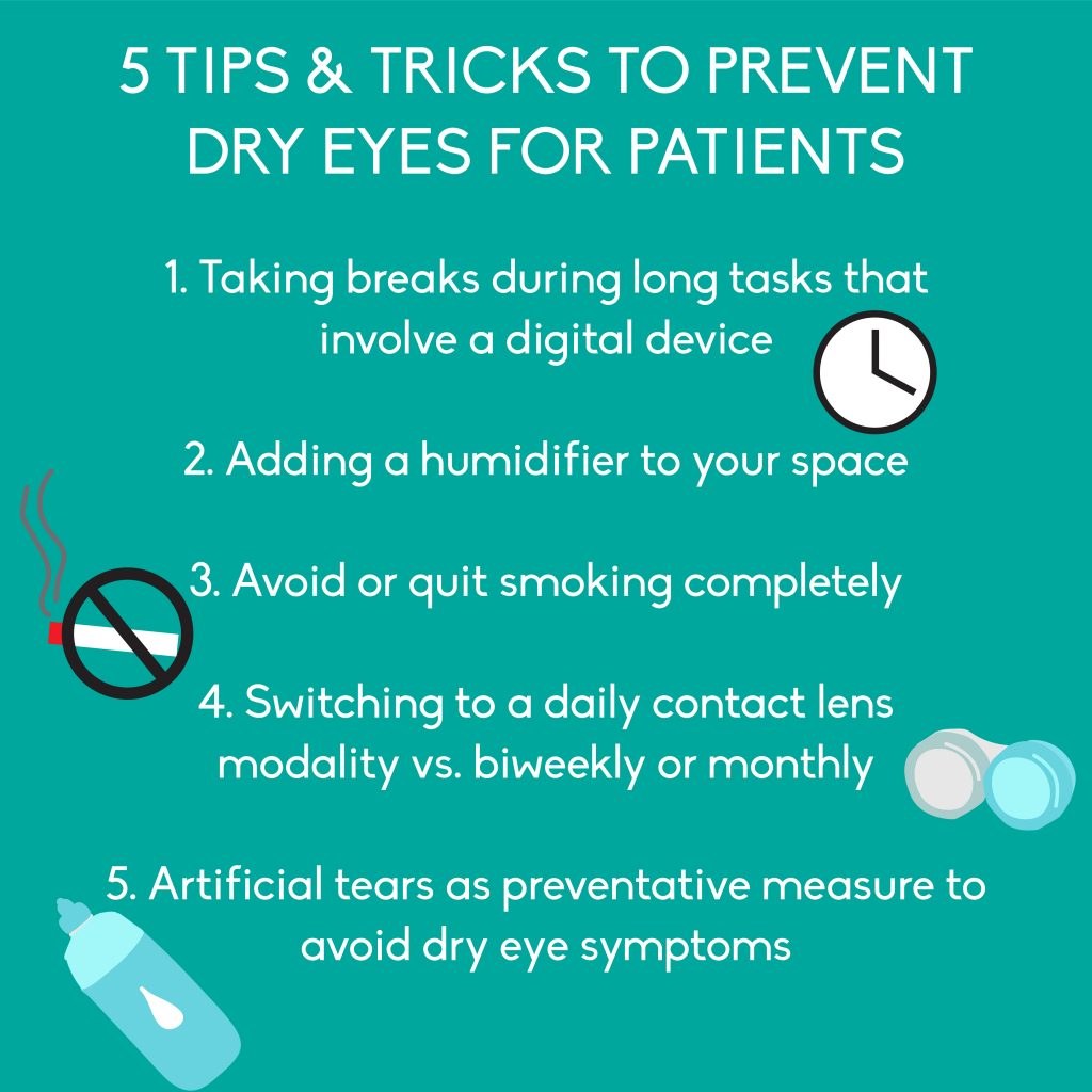 - Adding tears. Mild cases of dry eyes can often be managed using over-the-counter artificial tear solutions. These can be used as often as needed to supplement natural tear production. Preservative-free artificial tear solutions are recommended because they contain fewer additives, which can further irritate the eyes. People with dry eyes that don’t respond to artificial tears alone will need to take additional steps to treat their dry eyes.