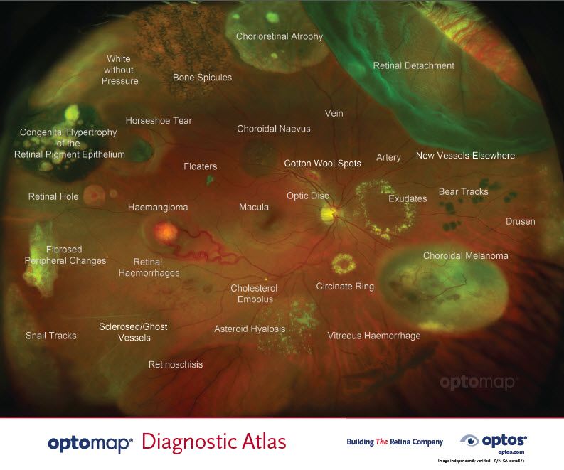 An Optomap image provides a bigger picture and more clinical information which facilitates the early detection, management and effective treatment of disorders and diseases evidenced in the retina such as retinal detachments and tears, glaucoma, diabetic retinopathy and age-related macular degeneration. Retinal images can also indicate evidence of systemic diseases such as hypertension and certain cancers.